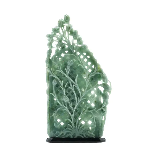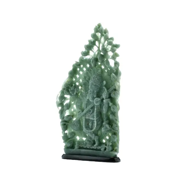 Gracefully carved from certified Guatemalan Jadeite, this standing Ganeshji sculpture radiates purity and balance. The figure is presented in a poised stance atop a polished base, embodying protection and auspicious beginnings. Known for its rich green tone and durability, Guatemalan Jade adds both spiritual and aesthetic value to this finely detailed piece of art.