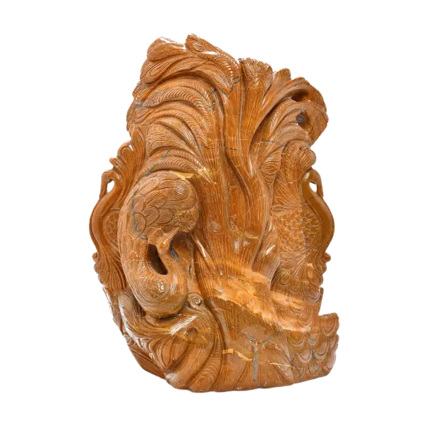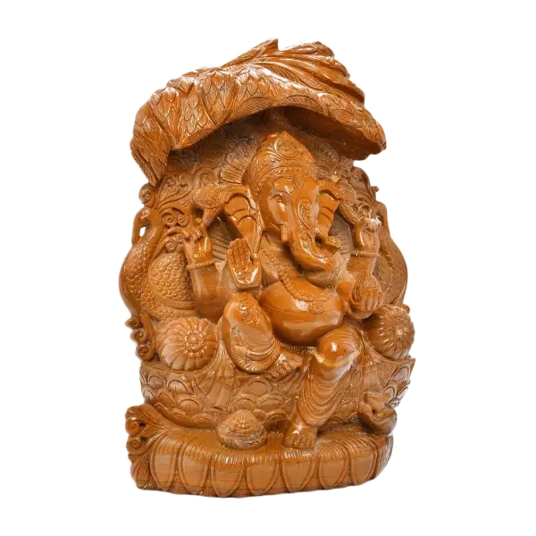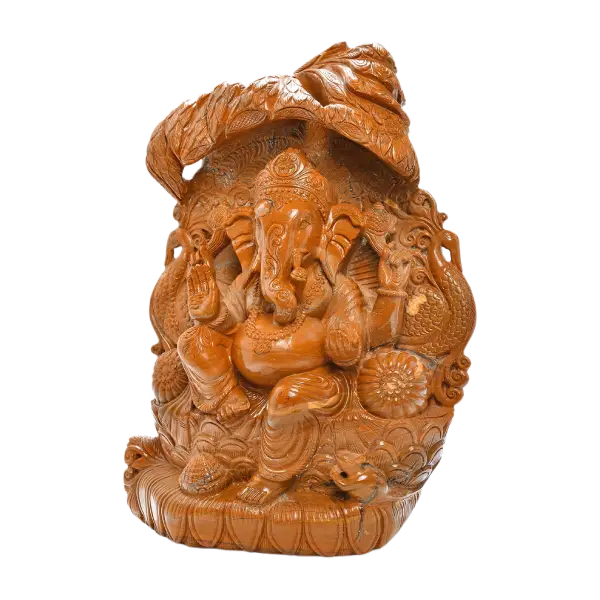 This majestic Ganeshji sculpture is carved from Landscape Jasper sourced from Madagascar, celebrated for its earthy tones and natural scenic patterns. With its commanding presence and exceptional detail, the piece evokes grounded energy and spiritual strength—perfect for large sanctuaries, entryway installations, or luxury art collections.