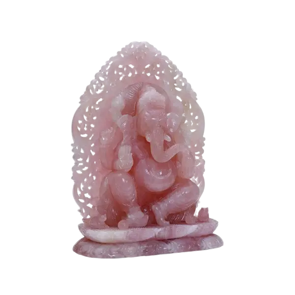 GANESHJI WITH JAALI WORK IN ROSE QUARTZ