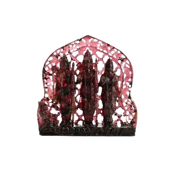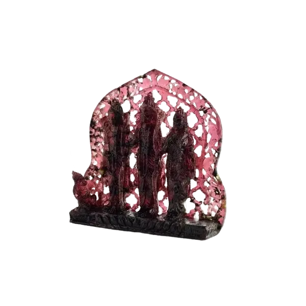 This captivating Ram Darbar sculpture is masterfully carved from Green Quartz and mounted on a polished agate base. Featuring Lord Ram, Sita, Laxman, and Hanuman, the piece radiates devotion, harmony, and divine strength. The gentle green hue of the quartz symbolizes compassion and spiritual growth, while the agate base provides grounding and aesthetic contrast. A sacred addition to home temples, meditation areas, or premium gemstone collections.
